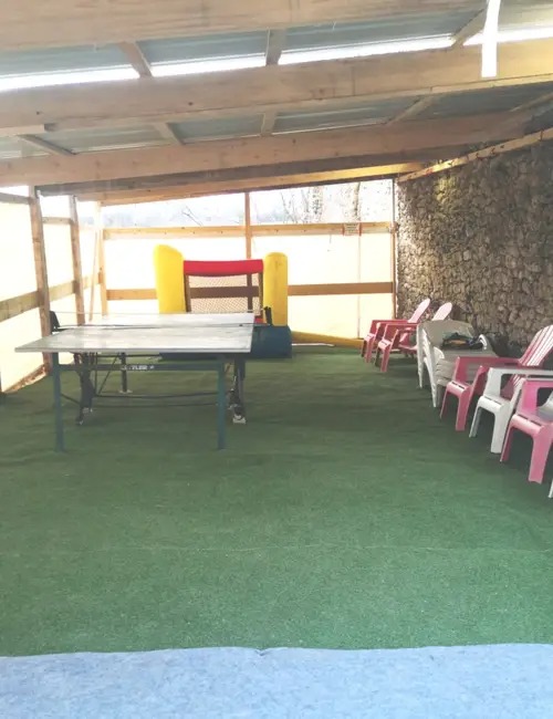 Une salle de jeux extérieure de 70m2 permet aux enfants de jouer dehors quelque soit la météo.