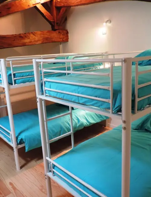 Il y a 4 chambres parentales lits doubles et 2 chambres dortoir enfants ados avec dans chacune 4 lits superposés.