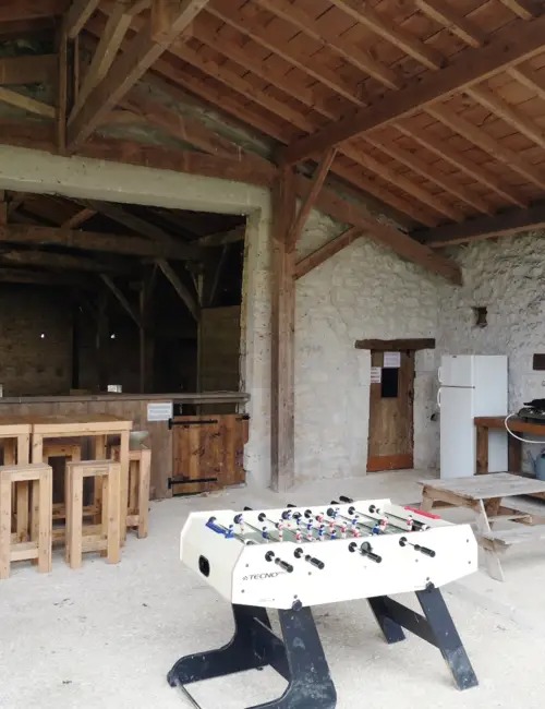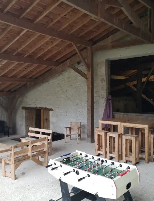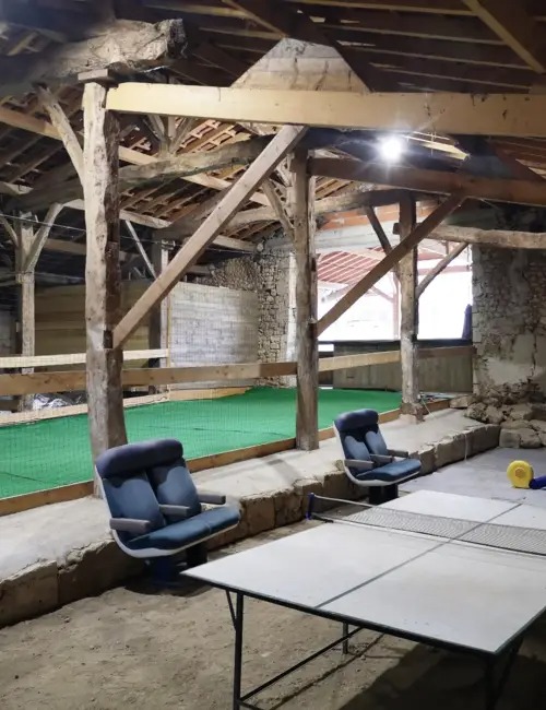 La grange avec ses multiples jeux, terrain de "futsal", panneau de basket, ping-pong, château gonflable est une idée formidable pour les enfants de même que sa grande terrasse couverte avec réfrigérateur, plancha etc.